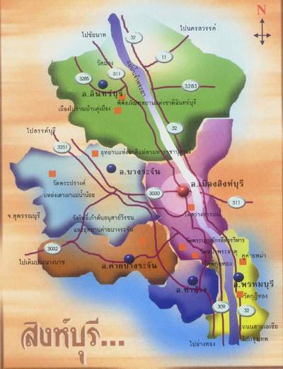 Sing Buri is diveded into 6 amphoes: Amphoe Sing Buri, Phromburi,